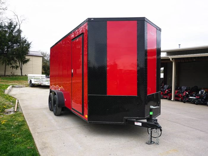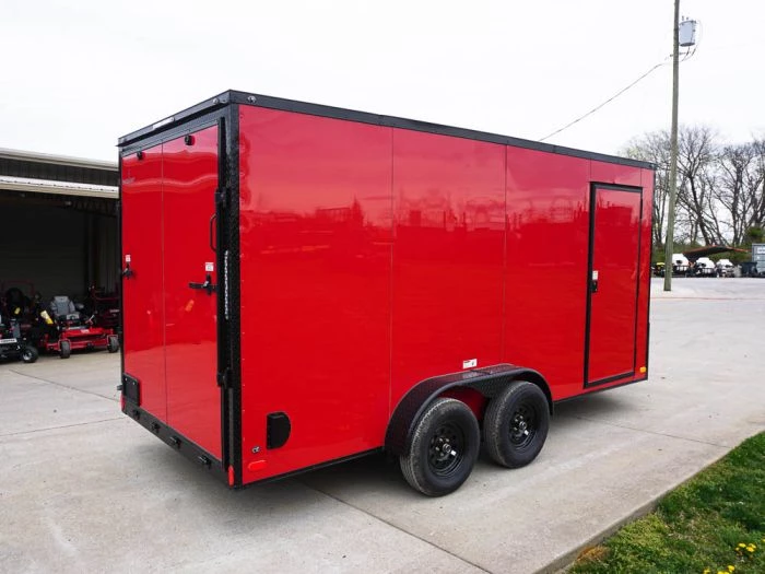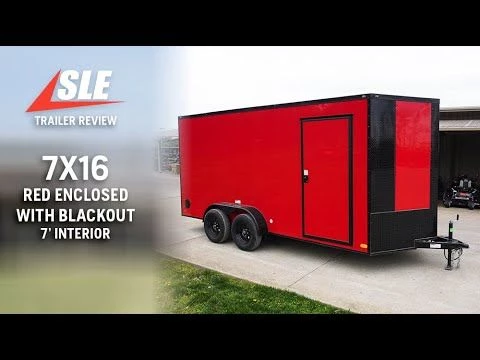 Enclosed Trailer 7×16 Red V-Nose with Blackout Package